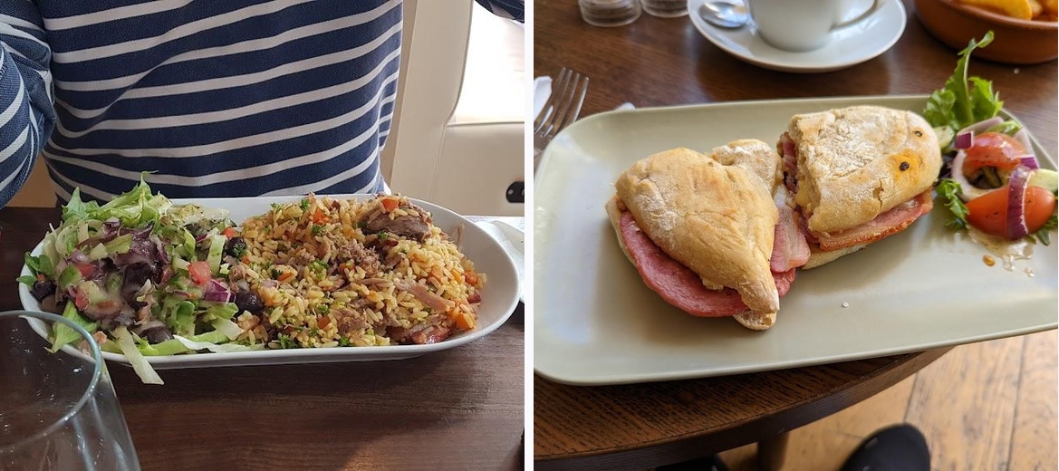 Small cosy venue. Nice, relaxed vibe. Portuguese and english dishes, from paninis and toasties to signature dishes. We opted for Arroz de pato, shredded duck, bacon and Portuguese style rice with salad, also Prego no prato, sirloin steak covered with fried eggs and rice, chips and salad. Complemented with sizzling garlic mushrooms.. we toasted with a glass of white and red Portuguese vino 🍷 😋 Post meal chef came to check we were satisfied, which was a nice touch. Overall, it is good value and would definitely come back. It was a lunchtime meal, and the venue was busy. I'm not sure if you can reserve tables though. Recommended.