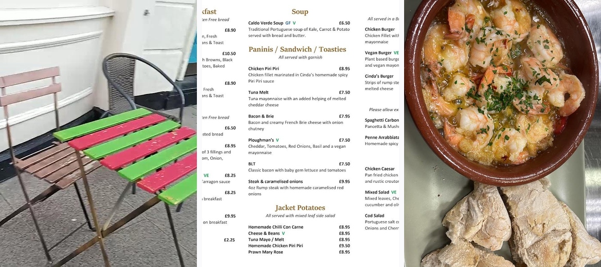Discover Cinda's Kitchen, a cozy family-run café in Leamington Spa serving delightful Portuguese-inspired dishes, from breakfast to brunch. Enjoy great coffee, exquisite desserts, and a welcoming atmosphere perfect for solo dining or family outings. Join us for a delicious meal or takeaway today!